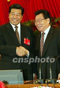 組圖:李瑞環(huán)祝賀賈慶林當(dāng)選全國政協(xié)主席