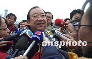三月十四日上午,出席全國(guó)政協(xié)十屆一次會(huì)議閉幕式的全國(guó)政協(xié)委員朱慶生談起最近發(fā)生的非典型性肺炎時(shí),立刻被記者團(tuán)團(tuán)圍住。作者:史利