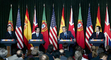 美國總統(tǒng)布什、英國首相布萊爾、西班牙首相阿斯納爾和葡萄牙總理巴羅佐16日在亞速爾群島舉行首腦會議。布什在會后表示,17日是重要時刻,是為解決伊拉克危機所作外交努力的最后期限。