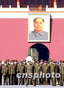 圖:解放軍人大代表天安門前合影