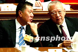 香港特別行政區(qū)行政長(zhǎng)官董建華和澳門(mén)特別行政區(qū)行政長(zhǎng)官何厚鏵,十八日出席在北京舉行的十屆全國(guó)人大一次會(huì)議閉幕會(huì)。作者:鄭萍萍