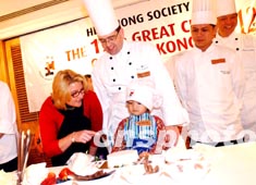 為宣傳即將在4月舉辦的"第12屆全港廚師精英大匯演",城中多位名廚18日在君悅酒店與協(xié)康會(huì)小朋友一起參與別開(kāi)生面的廚藝比賽。洪少葵 攝