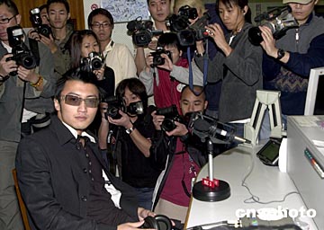中新網(wǎng)3月19日電 香港歌星謝霆鋒3月18日抱病接受香港電臺節(jié)目"娛樂滿天星"訪問,吸引大批記者在直播室采訪拍照。