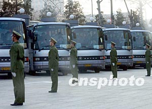 圖:解放軍護(hù)送人大代表各奔前程
