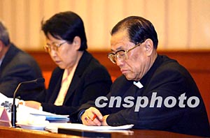 全國(guó)人大常委會(huì)副委員長(zhǎng)傅鐵山,十九日在北京出席十屆全國(guó)人大常委會(huì)一次會(huì)議。作者:滿會(huì)喬