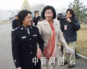 上午十時左右,身著米色套裙、白色皮鞋的滕春燕從位于北京大興的一所監(jiān)獄中走出來的時侯,與緊隨其后的兩位女警員相擁告別。面對早已等候在大門外的十多位中外記者,滕春燕興奮地說:“我現(xiàn)在的心情非常好!睘榻优畠撼霆z,滕春燕的父親滕玉本專程自外地來到北京。