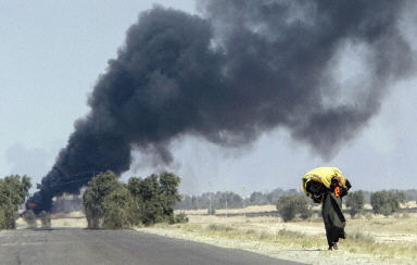 圖:伊拉克石油管道被伊軍點(diǎn)燃