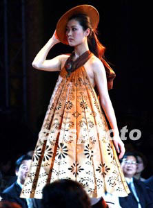 來自中國臺北的服飾佳作參加三月二十五日在北京舉行的“漢帛杯”國際青年時裝設(shè)計師作品大賽,以東方特色的扇面裙裝令人刮目相看。作者:賈國榮
