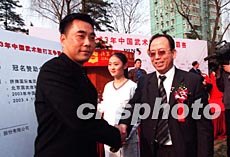 香港拼牌集團服飾公司二十五日在北京舉行2003年中國散打王爭霸賽冠名儀式,以進一步開發(fā)中國大陸服裝市場。圖為公司董事長柯夏鳴先生(左)與主辦單位代表揚富年先生在簽約儀式上。作者:武仲林