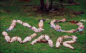 中新網(wǎng)3月27日電 據(jù)國際在線報道,當?shù)貢r間3月25日,在澳大利亞亞塔斯馬尼亞島東南岸港口城市霍巴特。35名婦女全裸在曠野擺出“NO WAR(不要戰(zhàn)爭)”的字樣反對澳大利亞政府支持美英聯(lián)軍對伊發(fā)動戰(zhàn)爭。