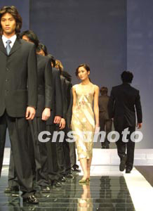 “款式與時(shí)尚同步”的愛(ài)都品牌西裝三月二十八日亮相于2003北京中國(guó)國(guó)際時(shí)裝周的T字臺(tái)上,深受女士們的青睞。作者:史利