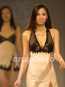 在北京舉行的2003年中國國際服裝服飾博覽會(huì)上,歐洲經(jīng)典內(nèi)衣28日晚進(jìn)行了展示。作者:趙振清