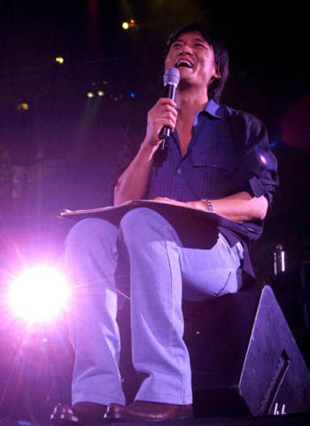 之后出場(chǎng)的表演嘉賓黃品源也不忘借機(jī)幽了周華健一默說(shuō)∶“還痛不痛?我剛才很擔(dān)心!(周∶我沒(méi)事!)我是擔(dān)心接下來(lái)的演出會(huì)要我?guī)兔ν瓿桑 睔獾弥苋A健險(xiǎn)些就要“拳腳相向”向他揮過(guò)去!接下來(lái)兩人你一言我一語(yǔ)的“留”字接口令,更是將整個(gè)氣氛搞輕松,尤其是黃品源一句“留長(zhǎng)發(fā)是為了遮住一邊的眼睛,好讓自己看得更清楚,‘一目了然’!”能言善道的周華健也被黃品源的“急智”給搞到語(yǔ)塞,笑得接不下去。