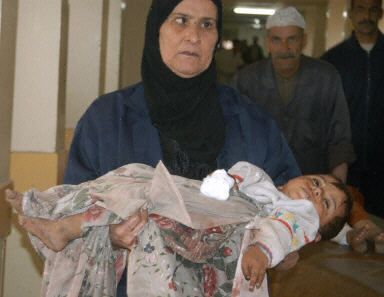 圖:伊拉克平民在美英聯(lián)軍的空襲中受傷