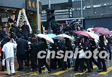已故歌星張國(guó)榮設(shè)在香港殯儀館的靈堂于四月七日傍晚6時(shí)至8時(shí)開放,眾多歌迷冒雨前來致祭。錢興強(qiáng) 攝