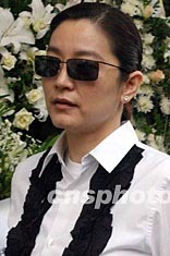 香港藝員沈殿霞四月八日在香港出席已故巨星張國榮舉殯。作者:錢興強