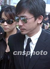 香港影帝梁朝偉四月八日在香港出席已故巨星張國榮舉殯。作者:錢興強