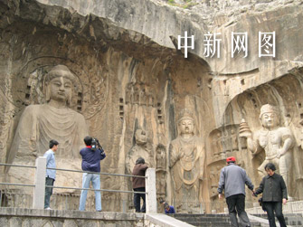 圖:網絡媒體記者參觀河南洛陽龍門石窟