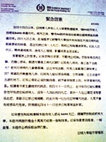 有關(guān)SARS的各種謠言在亞特蘭大華人社區(qū)傳得人心惶惶,亞城大華超級(jí)市場于11日在華人社區(qū)發(fā)放傳單,懸賞10萬元,以查出該超級(jí)市場受到感染而有人死亡謠言的來源。該超級(jí)市場表示,也將對(duì)蓄意造謠者采取法律行動(dòng)。