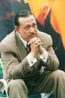 一身老克勒打扮的姜文,從《茉莉花開(kāi)》拍攝現(xiàn)場(chǎng)忙里偷閑,溜到上影廠小露臺(tái)接受采訪,為電影《綠茶》做宣傳。說(shuō)話中途偶爾接個(gè)電話,紫色吊帶的手機(jī),翻蓋上忽隱忽現(xiàn)一小方卡通粘紙,電話是趙薇打來(lái)的,姜文喚她“薇姐”。