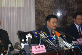 中新網(wǎng)4月17日電 今天上午,中國(guó)外交部新聞司、北京市外辦、北京市新聞辦聯(lián)合組織外國(guó)駐京記者和港臺(tái)駐京記者就北京市“非典型肺炎”的防治情況,現(xiàn)場(chǎng)采訪了北京同仁堂藥店、北京西客站、北京市疾病防治中心和地壇醫(yī)院。