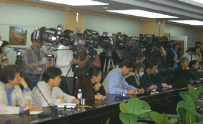 隨后,記者分兩組分別采訪北京市疾病預(yù)防控制中心和收治“非典”患者的地壇醫(yī)院。預(yù)防控制中心負(fù)責(zé)人介紹了該中心的職能及北京市防治“非典”熱線情況。他說,目前開通的中英文“非典”咨詢熱線,每天接收3000人次咨詢。中心有關(guān)人員還就記者提出的“非典”病人數(shù)、分類、“非典”病源研究情況、中心年預(yù)算和“五一”黃金周出游是否安全等問題回答了記者提問。在地壇醫(yī)院,記者走訪了病毒研究中心,還換上特制隔離服進(jìn)入“非典”病房。醫(yī)院副院長(zhǎng)兼發(fā)言人項(xiàng)曉培向記者介紹了該院收治的“非典”病人數(shù)及醫(yī)護(hù)情況。