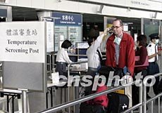 為確保沒有SARS病徵的旅客登機(jī),香港4月17日凌晨起實(shí)施離境探熱新檢疫措施,不少旅客均支持新安排,認(rèn)為令他們更安心。洪少葵 攝