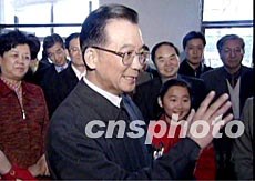 中新網(wǎng)4月18日電 今天下午,國(guó)務(wù)院總理溫家寶與中共中央政治局委員、國(guó)務(wù)院副總理吳儀,國(guó)務(wù)委員陳至立一起,先后到北京市六一幼兒園、北京市101中學(xué)、北京大學(xué)附屬小學(xué)和北京航空航天大學(xué),察看學(xué)校的教室、宿舍、閱覽室,與教師學(xué)生親切交談,詳細(xì)了解疫病防治工作。