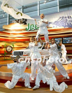 四月在上海舉行的第十屆國(guó)際汽車(chē)展覽會(huì)上,“少林寺小和尚”閃亮登場(chǎng),為北京JEEP新車(chē)造勢(shì)。作者:趙振清