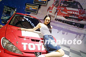 四月舉行的第十屆上海國際汽車工業(yè)展覽會上,一輛新款標(biāo)致賽車在靚麗少女的“陪伴”下閃亮登場。作者:湯彥俊