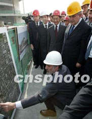 國務(wù)院總理溫家寶二十五日陪同法國總理拉法蘭參館國家大劇院工地時(shí),聽取設(shè)計(jì)師介紹情況。作者:滿會喬