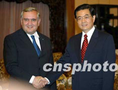 胡錦濤會見拉法蘭 強調(diào)加強與歐盟對話經(jīng)貿(mào)交流