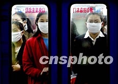 圖:北京地鐵上班族加強(qiáng)防護(hù)
