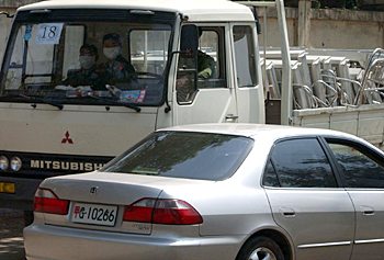 軍車穿梭往來準(zhǔn)備向“非典”開戰(zhàn)。