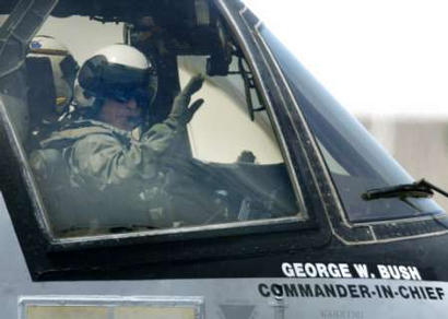 美國總統(tǒng)布什年輕時曾經(jīng)擔任得克薩斯州國民警衛(wèi)隊戰(zhàn)斗機飛行員,但自從入主白宮后,這位“戰(zhàn)爭總統(tǒng)”根本沒機會過把駕機癮。每次出遠門,總是先從白宮乘“海軍陸戰(zhàn)隊一號”直升機抵達機場,然后轉乘“空軍一號”專機。1日,為前往美“林肯號”航空母艦發(fā)表有關伊拉克戰(zhàn)爭結束的講話,同時鼓舞士氣,這位總統(tǒng)竟然提出要乘坐F-18型雙座教練機從圣迭哥飛行數(shù)百公里降落在航空母艦甲板上,然后在當天晚上9點(北京時間2日上午9點)發(fā)表全國講話,宣布伊拉克境內戰(zhàn)斗“基本結束”,但是“不達最終目的,美軍絕不收兵”。