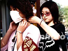 圖:北京廣播學(xué)院學(xué)生奔赴校園防非典第一線