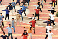 時至今日,交大校園已經(jīng)恢復(fù)了平靜,但這種平靜不似以往長假學(xué)生離校后的爽快。一位交大同學(xué)對記者說,原來校園里到處都是人,現(xiàn)在該走的都走了,校園反而是最安全的地方。操場上,一些沒有離校的大學(xué)生做著各種體育鍛煉。