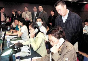 記者晚上在澳門非典型肺炎應(yīng)變小組所在地旅游中心看到,隨著首例非典個案的出現(xiàn),各部門已經(jīng)進(jìn)入戰(zhàn)時狀態(tài),包括社會文化司司長、衛(wèi)生局局長在內(nèi)的各部門工作人員已經(jīng)進(jìn)駐,二十條熱線電話也已緊急啟動。