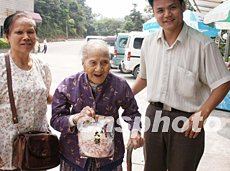 據(jù)潘伯介紹,他母親生于一八八五年十一月十二日,生育了兩男兩女,潘老伯排行最小,兄妹四人只有他一人還健在。潘老伯生育了七個子女,目前共有十二個孫子。其姐姐的孫子也已娶妻生子,母親已有玄外孫了,F(xiàn)在,政府每年都組織醫(yī)生上門為老人體檢,醫(yī)生說阿婆身體不錯,還能再長壽多年。