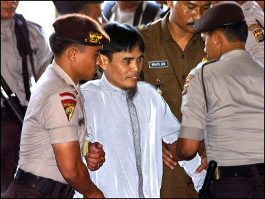 星期一的聆訊通過(guò)電視向印尼全國(guó)播放。如果阿姆羅茲和其它被告罪名成立,根據(jù)新制訂的反恐法將被判處死刑。