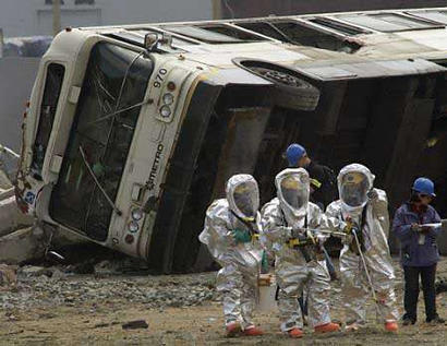 演習(xí)首先在美國西北海岸的城市西雅圖展開,當(dāng)?shù)貢r間12日中午12:09(北京時間13日3:09)開始,模擬西雅圖遭到核輻射或“骯臟炸彈”攻擊的情景。具體設(shè)想是恐怖分子在西雅圖市的南部施放了放射性武器,將造成了低輻射性微粒的擴散,使100人喪生,另外還有許多受害者受傷,等待救護。