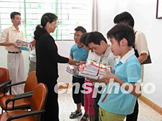 五月十八日是中國(guó)助殘日,廣東汕頭市殘聯(lián)及澄海區(qū)負(fù)責(zé)人為殘疾學(xué)生送去助學(xué)金和學(xué)習(xí)書(shū)籍。作者:曾干普