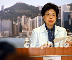 香港衛(wèi)生署署長陳馮富珍,5月19日公布香港SARS疫情時表示,新增個案病例只有1名,是歷來最低,患者是4個月大的女嬰。洪少葵 攝
