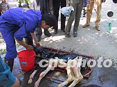 工作人員緊急搶救產(chǎn)下克隆牛的母牛。作者:龍新勇