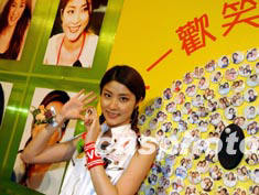 香港紅星陳慧琳五月二十五日在此間代表公益金接受“一人一歡笑”慈善大行動(dòng)支票轉(zhuǎn)贈(zèng)。圖為陳慧琳笑逐顏開,向眾歌迷傳遞歡笑。中新社傳真 潘索菲 攝
