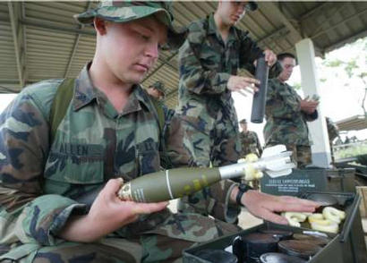 (三)向其盟國展示武器裝備,為美國軍火商推銷武器做廣告。如果說,戰(zhàn)場是美國軍火商最大的武器推銷場,那么,演習(xí)場就是美國軍火商的第二大武器推銷場。海灣戰(zhàn)爭讓美國軍火商掙足了鈔票,科索沃戰(zhàn)爭又讓美國軍火商們大撈了一把,戰(zhàn)爭已經(jīng)成為美國兜售武器的最佳時(shí)機(jī),這似乎已成為美國屢試不爽的法寶。然而,在沒有戰(zhàn)爭的和平時(shí)期,演習(xí)場就成了美國最好的武器推銷場。近幾年,亞太一些國家為實(shí)現(xiàn)軍隊(duì)現(xiàn)代化投入了巨資,這樣一個(gè)難得的軍火出售機(jī)會(huì),美國是絕不會(huì)放過的。通過“金色眼鏡蛇”演習(xí)美國將向其盟國展示其武器裝備的優(yōu)越性能,以引起這些國家的濃厚興趣,為美國軍火商在亞太軍火市場占有更大的份額打下基礎(chǔ)。(聞新芳)