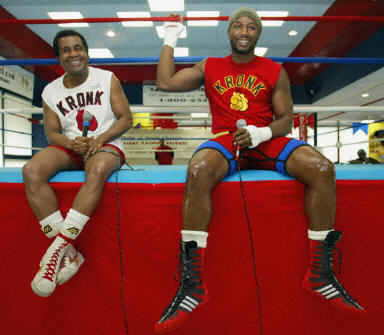 北京時間5月30日凌晨,英國拳王劉易斯為備戰(zhàn)與約翰迅的WBC重量級拳王爭霸賽,在賓西法尼亞進(jìn)行訓(xùn)練。圖為劉易斯訓(xùn)練前接受采訪。
