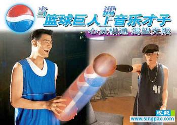 中新網(wǎng)5月30日電 與去年一樣,今年百事夏季頭炮電視廣告同樣由周杰倫領(lǐng)航,這次他會(huì)與籃球明星姚明合作,兩人通過(guò)音樂(lè)及籃球,釋放出前所未有的火花。