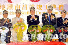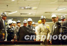 香港九廣鐵路公司主席田北辰,6月2日帶領(lǐng)嘉賓參觀竣工的南昌站大堂控制室,該站是地鐵網(wǎng)絡(luò)的一個(gè)全新車(chē)站,將于2003年秋季投入服務(wù)。