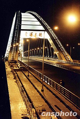 2003年6月10日晚7時,“世界第一鋼拱橋”——上海盧浦大橋迎來又一個激動時刻。上海電力安裝第二工程公司的技術(shù)人員在浦西、浦東兩個配電室同時撳下按鈕,盧浦大橋全線燈光次第亮起,將大橋照耀得通體透明,分外奪目。盧浦大橋景觀照明工程宣告基本竣工,為6月28日全線通車奠定基礎(chǔ)。鈕一新 攝